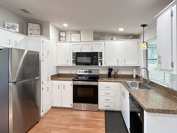 Nestled on the serene shores of Lake Sunshine, this delightful 2-bedroom, 2-bath home offers breathtaking water views from every room. Located in the vibrant 55+ community of Water Oak Country Club Estates, this home features a desirable split bedroom, open floor plan designed for easy living and entertaining. Relax and enjoy the scenic beauty from your enclosed lanai, or take advantage of the spacious golf cart garage and double carport for added convenience. The home comes partially furnished and is perfect for those seeking a peaceful retreat with spectacular sunsets each evening. Don't miss the opportunity to make this beautiful home yours in one of the most sought-after communities around!