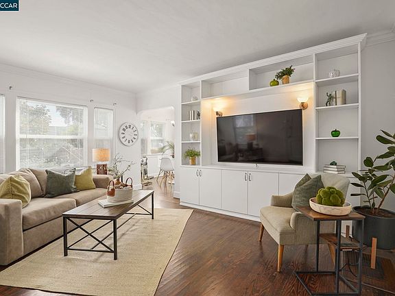 Darling, Charming and Move-In Ready! This beautifully maintained home is filled with thoughtful upgrades and modern comforts. Recent improvements include a new electrical panel (2024), a new water heater (2024), a newer roof (2022), and fresh interior paint (2024). The custom-built-in entertainment center in the family room and primary bedroom closet organizers (both by California Closets, 2024) add style and functionality. You will also enjoy refinished hardwood floors, dual-pane windows, central HVAC, and a hot and cold water filtration system at the kitchen sink. The exterior was painted in 2019, and the garage offers extra storage space for convenience. You will be able to step through the beautiful custom French doors to a partially enclosed deck overlooking a spacious backyard—complete with planter boxes, a pergola with electrical hookups, and a spa pad wired with 220V power. Additional outdoor features include two sheds (one with electricity), rain barrels, and a peaceful fountain for a touch of tranquility. The seller is including the newer washer and dryer, refrigerator, and two large flat-screen TVs. This home has been lovingly cared for and is truly ready for its new owner to move right in and enjoy!