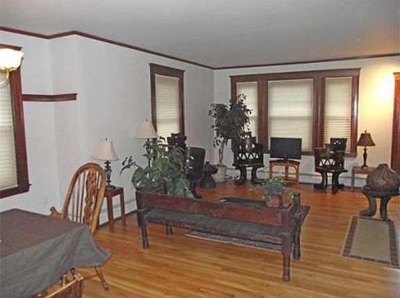 This elegant two level apartment boasts character through its open floor plan, hardwood floors, and ample space for storage. The open living room dining room has a built in hutch book case and fireplace. Spacious kitchen with attached 3 season porch to enjoy morning breakfast. The third floor master suite has a whirl pool tub, and separate dressing area. The laundry in in the unit off the kitchen. Right outside of Coolidge Square's shops and restaurants and the bus to Harvard Square. Please note pets and smoking are not permitted