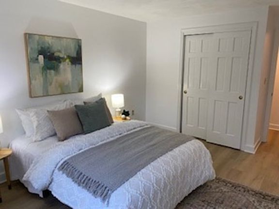 Minutes to Watertown Sq., Arsenal Yards, Charles River trails and public transportation to Boston and Cambridge, this one level 2 bedroom, 2 bathroom home is ready for your personal touch! The condominium has just been painted and new luxury vinyl flooring has been installed. Spacious, open living and dining room combination opens to a private balcony to enjoy your morning coffee. The kitchen is efficiently laid out with dishwasher, electric stove and stainless refrigerator. An en suite bathroom and ample closet space completes the primary bedroom. The second bathroom has a large linen closet ,full sized laundry and bath tub. Garage parking space, guest parking, private storage, elevator and common yard makes this condominium an outstanding value! Rentals and smoking are not allowed.