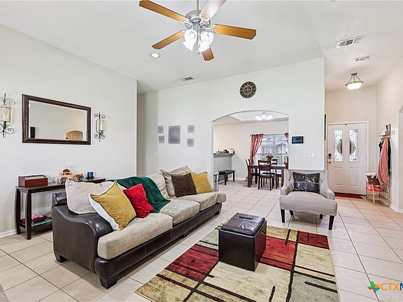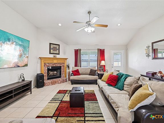 Welcome to this beautifully maintained residence offering both comfort and convenience, ideally located with quick access to Belton, Temple, Killeen, and Fort Cavazos. The spacious living room features soaring ceilings and a wood-burning fireplace, creating a warm and inviting focal point. A thoughtfully designed split floor plan ensures privacy for the primary suite, while open living spaces provide functionality for everyday living and entertaining. Interior highlights include ceramic tile flooring in all main areas, tile tub/shower surrounds, and plush carpet in the bedrooms. The primary suite boasts a tray ceiling and an en-suite bath complete with dual walk-in closets, double vanities, a relaxing garden tub, and a separate walk-in shower. Exterior amenities include a large covered patio overlooking a privacy-fenced backyard, complete with a sprinkler system in both front and back yards, mature landscaping, and durable 4-side brick construction. This home combines timeless design with modern comfort—schedule your private showing today.