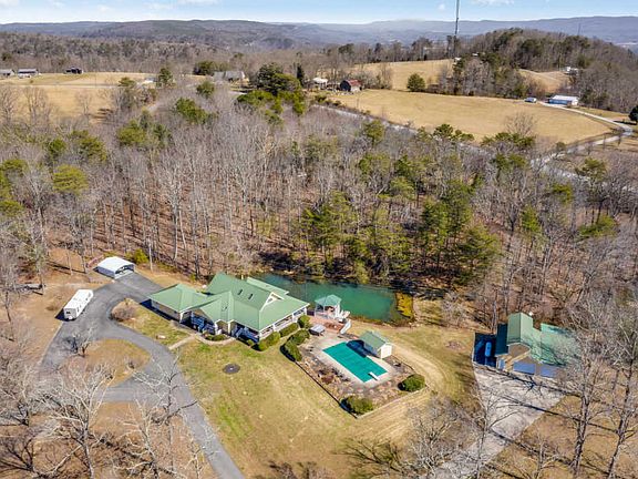This home is conveniently located just minutes from Hwy 127 in Dunlap Tn. The surrounding 21.9 acres, 3 gorgeous ponds, 2 car detached garage with upstairs apartment, and a separate barn with stalls is about 45 minutes from downtown Chattanooga. You will love the large covered front porch that overlooks the in ground pool and 3 ponds on the property. The porch wraps around the home and is a great place to eat outdoors and entertain. Upon entering the home, the large vaulted tongue and groove ceilings are absolutely breathtaking. The spiral staircase will take you upstairs to the bonus room which is a great place for an office or media room. The kitchen has plenty of counter space and cabinetry. The kitchen appliances have been updated to stainless appliances. The dining area is combined with the living room and provides plenty of space. The living room has plenty of space for entertaining as well with a cozy fireplace for those cool evenings. The master bedroom is on the main floor and can easily handle that large bedroom suite. The fireplace adds a gorgeous ambiance to the master bedroom as well. The walk in closet is also a pleasant surprise along with the jacuzzi tub and separate shower. The two additional bedrooms are also on the main floor. The separate living quarters above the garage is perfect for family or friends to stay the night. The apartment is heated and cooled and has a full kitchenette. The downstairs garage is huge and is great for wood working, restoring cars, or storage. The separate barn on the property was previously a saw mill and also a great space for a wood shop or storage. The barn may require some work but is salvageable. Schedule your appointment today and come see this home!