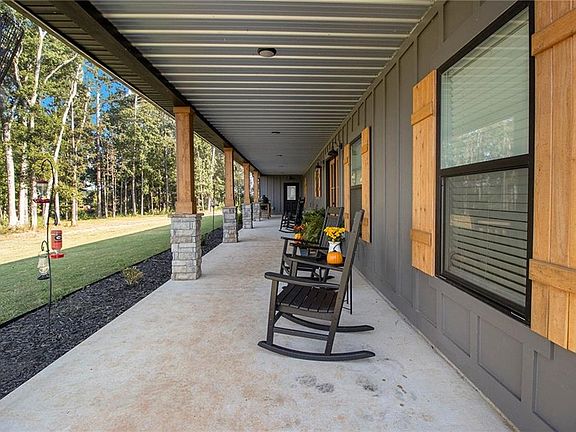 Welcome to your peaceful retreat nestled on 10 fully fenced acres with cross fencing. This beautiful ranch home offers luxury amenities with rustic charm just 45 minutes from Atlanta, and 25 minutes to Macon. As you step in the front door you will notice the new luxury vinyl plank flooring, and the huge kitchen island with ample storage. The new flooring contrasts nicely against the reclaimed metal used in the upper wall space. A split bedroom floor plan ensures maximum privacy for the entire family. The open concept living room and kitchen is ideal for family gatherings and meal preparation. There are quartz counters in the kitchen, and a walk-in pantry. Enjoy warmth in the family room with the Pellet Stove with a thermostat and blower. Never worry about power outages with the Generac Whole Home Generator with 26kW that can keep the entire home powered! The HVAC system includes a UV filter to kill mold, bacteria and viruses in the system. The primary suit offers an oversized tub, walk in shower and plenty of closet space. The separate laundry room has additional cabinetry and folding space. The garage is enormous and with 12' garage doors. You will find power for EV charging, a tankless water heater and a storm shelter with a half bath. The covered front and back porches offer additional space to unwind, grill out, or simply take in the views. Outside you will find 2 covered RV hookups with dedicated septic and water. There is a fully equipped bathhouse with washer and dryer connections, and a second driveway to access the RV area. There is a run-in shed in the larger pasture, and a smaller pasture that housed goats. The exterior of the home offers dawn to dusk lighting and additional exterior storage. Work from home with high speed fiber internet. Come and see all this home has to offer!