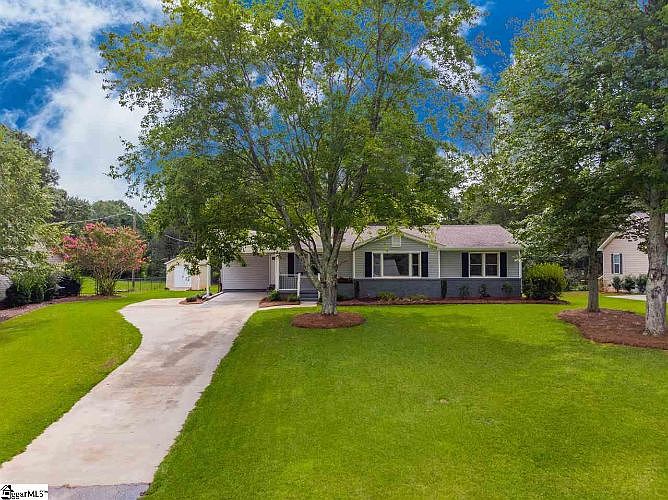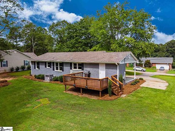 Check out this beautiful newly renovated home in the award winning District 5 schools. This home features 2 bedrooms and 1 bath, the dining room could function as a third bedroom or office. You'll fall in love with all the details put into this home! Original hardwoods were refinished in the living room and all bedrooms. Luxury vinyl plank in kitchen, bath, and laundry rooms. This home has crown molding throughout and brand new custom kitchen cabinets. Enjoy relaxing outdoors on your large lot that features a 12x16 deck, plus a fire pit area for family gatherings. Enjoy sitting on your front porch sipping a glass of tea overlooking the neighborhood. Great location! Extremely convenient to I-85, Greer, BMW, and Greenville. Don't miss your chance to own this charming home! Please note that hammock stand and patio furniture around the fire pit WILL NOT convey. Washer, dryer, and refrigerator will convey AS IS.