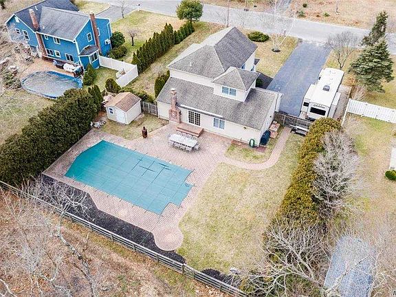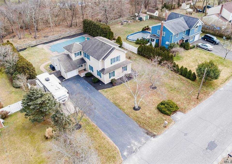 Beautiful home (rebuilt In 2005) with gorgeous backyard in-ground 20x40 pool. New carpet, hardwood/tile flooring, living room with fireplace, eat-in kitchen with professional Viking range (propane) & Kitchenaid stainless steel appliances, 200-amp electrical service, central air, raised panel doors, custom trim, fenced yard with pool and paving stone patio, 1 car garage, and tons parking! Backyard abuts to Town-owned property. Longwood Schools: Ridge ES.