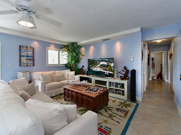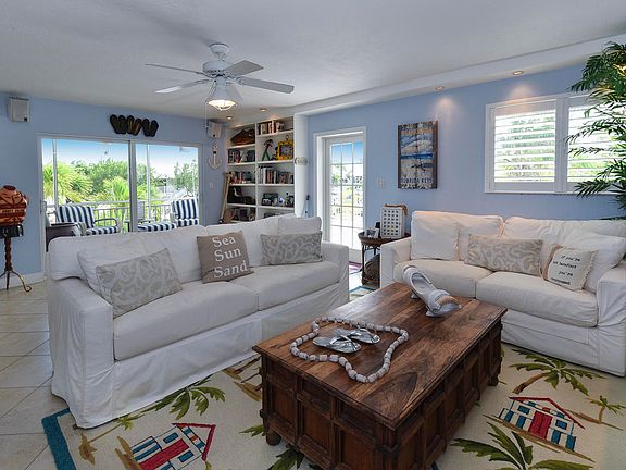 Beautiful bay views from this 3 bedroom, 2 bath canal front beach home. Updated with tile and hardwood floors, gourmet kitchen with gas cook top and impact windows and doors! This home is gated and situated on a lot and a half and offers 108' of concrete dock! Great outdoor living space with paver driveway, sandy beach area, gas tiki torches for great ambiance, beautiful landscaping with landscape lighting, underwater lighting, outdoor shower, tiki hut and built in brick BBQ! The custom outdoor bar makes it the perfect place for entertaining friends and family!