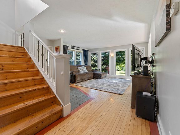 Welcome to 111 Riveness Rd, where modern upgrades meet cozy countryside charm with the convenience of being right in town! This unique home offers a blend of comfort and functionality with highlights that include beautiful hardwood floors throughout the main level and a convenient main floor bedroom. The open-concept kitchen boasts ceramic tile, a backsplash, propane stove, and newer appliances, with a large island perfect for entertaining. The bright and airy living area features floor-to-ceiling windows that flood the space with natural light, along with a charming coffee bar for your morning routine. Upstairs, you’ll find hardwood floors, an office with French doors, and a spacious master suite with a private deck overlooking the serene backyard. Enjoy the convenience of main floor laundry with a ¾ bath, as well as a finished basement featuring luxury vinyl tile (LVT) floors, new basement windows, a backup sump pump, and a radon mitigation system for peace of mind. Outdoor enthusiasts will appreciate the well-maintained koi ponds, scenic pond views filled with wildlife, a chicken coop, spring-fed pond, underground dog fence, and a playhouse. The property also includes a garage that is insulated with lofted storage, a new blacktop driveway (installed 3 years ago), and beautifully landscaped grounds with drainage improvements. This home also features central A/C, a newer water heater and furnace, PEX plumbing, and a drainage system installed in the lower level in 2020, this home is move-in ready and built to last. Don’t miss the chance to make this charming property your own!