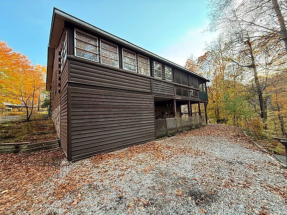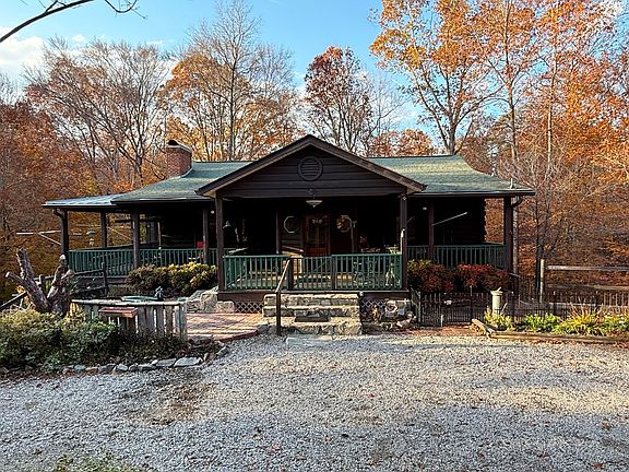 This secluded Log home offers a private setting on 11.06 AC. Inside the home there are 2 bedrooms, open and spacious living room with a fireplace, kitchen with an island, stainless appliances, enclosed porch off the primary bedroom, screened porch off the kitchen and 1.5 bathrooms. Downstairs there is a large family room (could be used as a 3rd bedroom if needed), 2nd bathroom and a large workshop. There is a detached carport for the vehicles as well as a detached carport for parking an RV or camper. On the acreage there is fencing and a 2 stall horse barn with a tack room and feed room. There is also a run in shed and a garden area. This property has some river frontage and an abondance of wildlife. This is a nature lovers paradise. There is also a whole house generator.