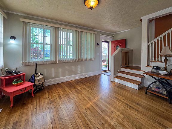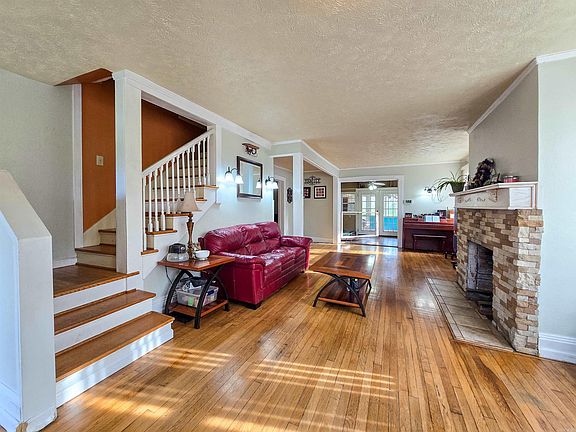 Step into timeless charm with this majestic two-story home built in 1940 on approx. 1.68 acres with river views, mature trees, and beautiful landscaping. Original wood floors, a wooden staircase, and vintage details fill this 3 or 4 bedroom, 3-bath home with character. Two baths feature clawfoot tubs, while one offers a custom-tiled shower. The main level includes a formal dining room, great room with fireplace, a massive sunken sunroom with hardwood floors, nostalgic kitchen with ceramic tile counters and pantry, laundry room, office/craft space, and a 4th bedroom or den with adjoining ¾ bath. Upstairs, the primary suite includes a clawfoot tub. Two more bedrooms—one with river view, the other with fireplace and dual closets—share a Jack & Jill bath with custom vanity, cobalt sink, and claw tub. Outside, enjoy two outbuildings—one for tools or equipment, the other perfect for hobbies or a She-Shed—plus bonus storage between the house and double garage. A truly unique property you must see.