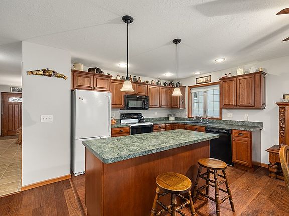 Welcome to the Cottages at Rivers Edge! This is a beautiful ranch home with a versatile bonus flex room over the garage! Offering 1,588 sq ft on the main floor plus 200+ sq ft upstairs, this property blends comfort & functionality. Featuring 2 bedrooms & 2 full baths, the primary en-suite boasts a spacious walk-in closet & abundant storage. Enjoy a cozy cedar sunroom, large dining area, & an eat-at island for casual meals. Stylish hand scraped look floorings in main setting. The main-level laundry adds convenience, while the poured concrete basement walls provide durability & potential. Extra cabinetry in the garage keeps everything organized. Relax on the covered front porch or use the flex room as an office, hobby space, or guest retreat. This home is designed for easy living with thoughtful touches throughout! $100/mo HOA contribution takes care of the mowing & snow removal. You owe it to yourself to see it before it is in contract! Listing agent is related to seller.