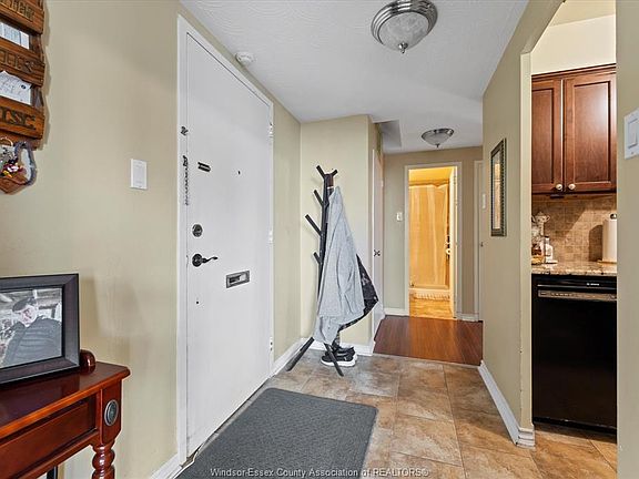 Bright and stylish 10th-floor condo offering incredible views of both the Detroit River and Windsor’s vibrant downtown. This beautifully updated unit features a renovated kitchen with granite countertops, sleek cabinetry, and a dedicated dining area perfect for entertaining. The spacious bedroom includes custom built-in cabinetry for added storage, while floor-to-ceiling windows fill the home with natural light. Enjoy two private balconies; one overlooking the river and both showcasing the energy of downtown living. This well-maintained, pet-free building offers fantastic amenities, including an outdoor pool, saunas, and extensive building upgrades over the years. Located steps from shops, restaurants, the waterfront trail system, and Caesars Windsor, this condo provides the ultimate in low-maintenance, convenient living. With all utilities included in the monthly condo fee, this is an excellent opportunity for young professionals or retirees looking for a comfortable, care-free lifestyle in the heart of the city.