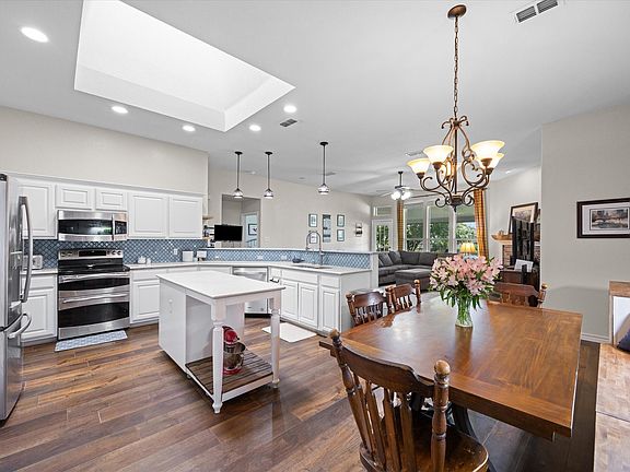 This beautiful single story home sits on a .658-acre corner lot just a 5 minute walk to highly ranked Stuard Elementary! Offering the perfect blend of peaceful country living and city conveniences, with no HOA, this property stands out with one of the largest yards in the neighborhood. Step outside to enjoy a 660 sq. ft. covered patio, stone walkways, a cozy fire pit with stone seating, dual storage sheds, lush landscaping with mature trees, and a dedicated garden area. The property is fully fenced with oversized gates, allowing for pull-through parking for campers, boats, or multiple vehicles. Inside, the 5-bedroom, 3-bath layout includes 2 living areas, 2 dining areas, and a 3-car garage. The open floor plan seamlessly connects the kitchen, breakfast room, and living room. A large 5th bedroom easily flexes as a third living room or a second primary bedroom suite connected to a full bath. The kitchen features stainless steel appliances, an oversized double-door pantry, prep island, quartz counters with breakfast bar, and a built-in banquette. Throughout the home, enjoy upgrades designed for comfort and efficiency: durable luxury vinyl plank flooring, a wood-burning stove, hybrid electric water heater (30% more efficient while maintaining capacity), a whole-house water filtration & softener system, and newer HVAC unit. New fiber internet being installed in the community!