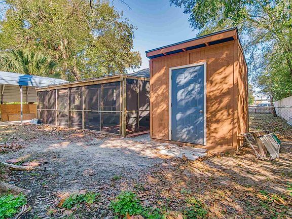 Your search for a charming cottage home ends here! This delightful property is perfect for a first-time homebuyer, an investment opportunity, or anyone seeking a house filled with character and potential. As you arrive, you'll notice the spacious driveway with a two-car carport and an ample-sized lot, providing plenty of space for outdoor activities. The inviting front porch welcomes you with room for your favorite plants and a cozy, relaxing spot. Step inside to discover the timeless charm of hardwood floors flowing through the living area and bedrooms. The adorable kitchen features white cabinets, vinyl flooring, stainless steel appliances, and a stainless-steel sink. From here, you'll have access to the back porch and screened-in patio—a perfect spot to enjoy Florida's beautiful weather. The backyard is fenced with a chain-link fence and includes a storage shed, which is ideal for storing holiday decorations or tools. Inside, the two bedrooms are snug and functional, with one conveniently incorporating the laundry area, making chores a breeze. The full bathroom boasts tile floors, a tub/shower combination, and a single vanity sink. This home is ready and waiting for your personal touch. Don’t miss the opportunity to make it your own!