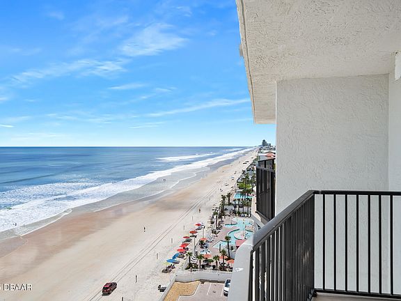 No pending assessments. All major building upgrades and reinspections complete! Welcome to your piece of paradise on Ormond Beach! This beautifully updated and completely furnished 2-bedroom, 2-bath oceanfront condo is on the top floor, offering unobstructed 180-degree views of the Atlantic Ocean from the north, south, and east. It's move-in ready, bring your swimsuit! You'll be one of only three owners on the top floor. Enjoy sunrises and evening sea breezes, your private balcony is the perfect front-row seat to coastal living. Inside, you'll find a bright, open layout with tile flooring, a renovated kitchen featuring granite countertops, a stylish tile backsplash, and stainless steel appliances. The open dining area and spacious living room are ideal for entertaining. Additional features include: plantation shutters throughout, electric exterior roll-down hurricane shutters for ease and peace of mind,... updated bathrooms and a spacious primary suite with direct balcony access. This well-maintained building offers a large oceanfront pool and gated beach access, making every day feel like a vacation. Recent Building Improvements Include: a new roof, new A/C, seawall & pool (2023), elevator modernization (2023) new building generator, upgraded parking deck & walkways. This is your chance to own a move-in ready beachfront retreat with no looming costs or projects. Schedule your showing today and start living the oceanfront lifestyle you've been dreaming of!