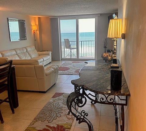Fully furnished, direct oceanfront condo with all the amenities you could desire. This two-bedroom, two-bath unit has updates galore! It boasts upgraded tile floors, a completely updated kitchen, and bathrooms. Natural light from the new hurricane impact sliding doors floods both the living and dining areas, as well as the primary bedroom. Both sliding doors lead to the spacious balcony perfect for watching marine life, having breakfast in the sun, or reading a book. Not only is it steps away from the beautiful sands of Ormond Beach, but this property is conveniently located near shopping, dining, and entertainment. Minimum 4-month rental.