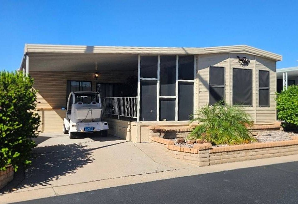 NO LOT/SPACE RENT!! Enjoy luxury resort living in Greenfield Village RV Resort! Unit 419 features a new Lennox HVAC (2024) and comes with a street-legal golf cart included in the sale. Experience the perfect blend of comfort and community in this amenity-packed 55+ gated neighborhood. Enjoy heated pools, spas, pickleball and tennis courts, a fitness center, craft and woodworking shops, and endless social activities-all with full land ownership which means NO lot/space rent, in a vibrant East Mesa location close to shopping, golf, and freeways!