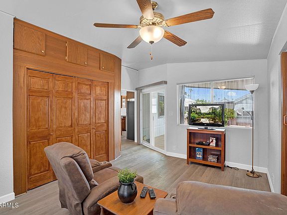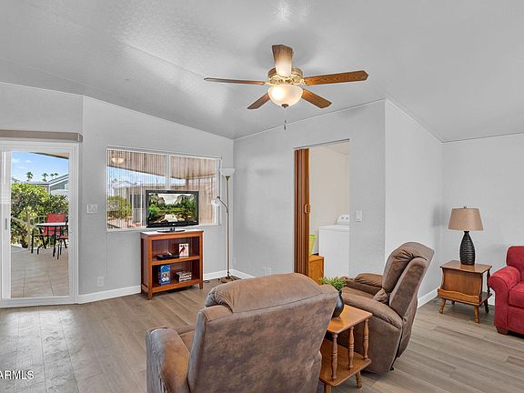 Hard-to-find OWNED LAND in a gated, resort-style 55+ community—no lot rent here! This updated park model offers 1 bed, 1.5 baths, and approx. 750 sq ft of bright, efficient living space. Upgrades include new luxury vinyl plank flooring, roof (approx. 4 yrs), freshly coated patio roof (2024), new A/C (2025), granite counter tops + water heater (2025). Enjoy the covered patio or the community's resort amenities: heated pool, spa, pickleball, tennis, shuffleboard, bocce ball, batting cage, and driving range. HOA includes water, sewer & trash. Ideal full-time home or winter retreat—where resort life meets ownership!