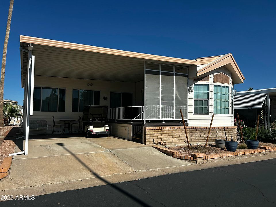 Rare 2 bedroom 2 bathroom unit with 2 living areas as well. Interior also features great floorplan, ceiling fans, laundry, ample updates. Large covered patio with carport with space for a car and golf cart. Outside you will also find storage under the unit off of the carport. In back is a walk in workshop/storage closet that is attached/under the main roof. All this and you OWN the land which saves several hundred dollars each month over the competition that pays a land lease. The HOA is $268 per month which is very competitive in 55+ communities and that fee includes water, sewer, trash, common area maintenance and use of the community amenities. Enjoy your new home just steps from heated pool & spa, tennis courts, pickleball, shuffleboard, workout room, card games, crafting & arts.