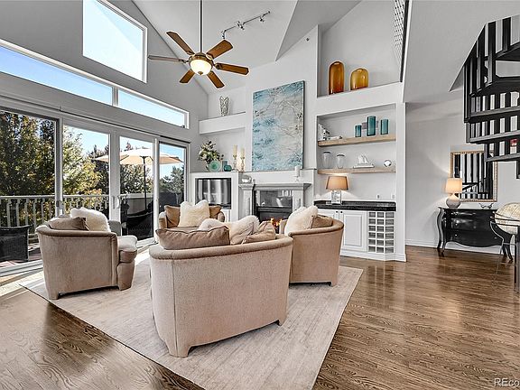 This exceptional top floor condominium situated in the prestigious Le Jardin complex in Cherry Creek presents a remarkable opportunity for discerning buyers. Offering 2 well-appointed bedrooms and 2 bathrooms plus a loft overlooking the living room within 1,545 square feet, this residence combines elegance with modern living. The expansive living room features a high vaulted ceiling, hardwood floors, with superb natural light, creating an inviting environment. The kitchen, equipped with stainless steel appliances and dark stone countertops, flows seamlessly into the dining area, perfect for both casual and formal dining experiences. The primary bedroom suite boasts an ensuite bathroom with a double vanity and luxurious shower with custom built in cabinetry in the closet area. Residents can enjoy a private balcony, ideal for outdoor dining or relaxation while overlooking wooded views of the neighborhood and skyline. The property includes 2 deeded parking spaces in the private garage, ensuring convenience in urban settings. The community offers a host of amenities, including a fitness center and beautifully landscaped outdoor spaces, enhancing your living experience. Located in the vibrant Cherry Creek neighborhood, this property offers easy access to up-scale shopping, dining, and recreational activities, making it an ideal choice for those seeking a sophisticated urban lifestyle. These coveted top floor corner condominiums rarely come on the market, don’t wait to set up your private tour!