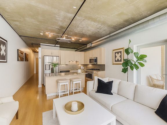 Cozy fireplaceSpacious soft loft bedroomLarge private balconyCentral islandIn-unit laundryOpen floor planRich maple cabinetry