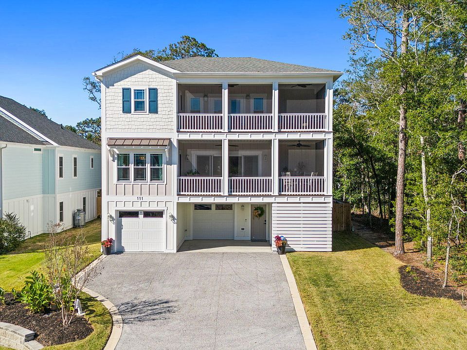 Experience the perfect blend of coastal elegance and modern comfort in this stunning 3-story home located on Oak Island's tranquil west end — outside of the flood zone. Featuring 3 bedrooms, 3.5 baths, plus a spacious office ideal as a 4th bedroom, this home showcases Seacoast Homes' 2022 Diamond Award-Winning Tidewater Plan with exceptional craftsmanship throughout.