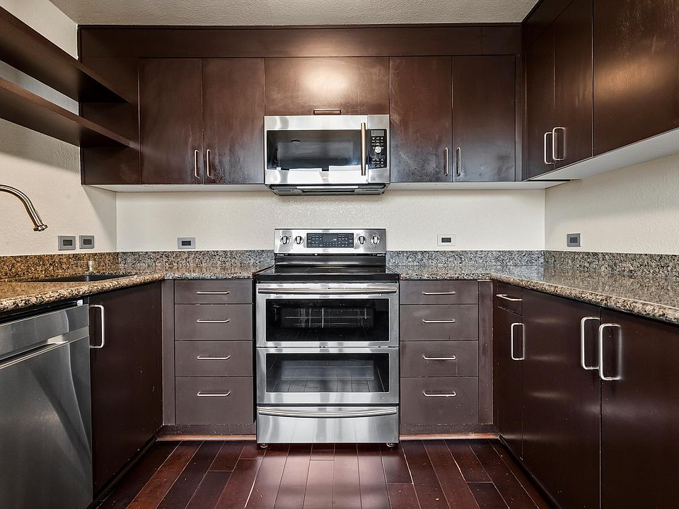 - Exterior features: Granite countertop, High-speed Internet Ready, Living room, Secured entry, Stainless steel appliances