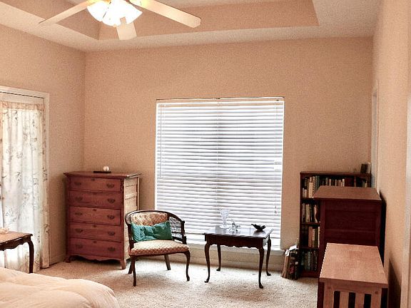 Lovely 4 bed, 2 bath brick rambler set in the middle of 7 green acres, with attached two car garage. Open floor plan and 10 ft. tray ceilings create a spacious atmosphere. Floors are hardwood, tile, and carpet. A large bathroom accompanies the master bedroom. Kitchen and laundry room are both equipped with many closets, cupboards, and drawers. Large windows in every room provide plenty of light. Shaded front and back porches invite sitting outdoors in most weather. There is an open barn & the property is fenced on two sides. Perfect for horses!