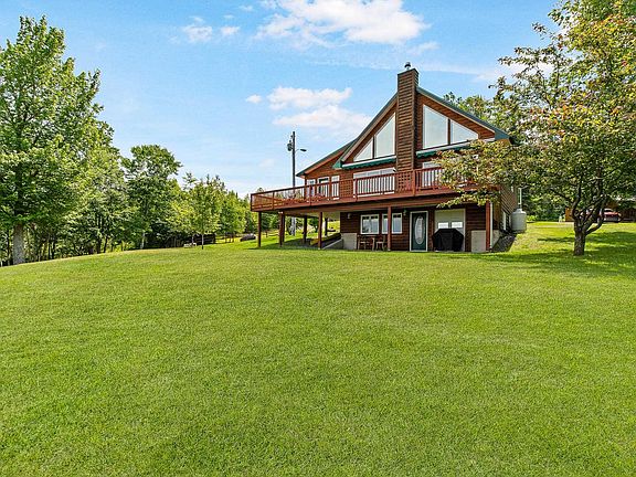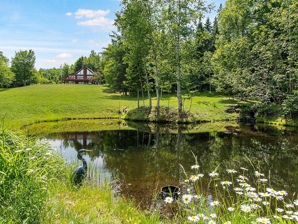 Introducing 111 Scenic Dr. with breathtaking views of Lake Wallace and Canada on 10.43 private acres and also offers deeded access to the lake with private dock rights. This wonderful log sided chalet has a wonderful and spacious floor plan with 3 levels of living. The main level has a nice entry way with a mudroom and seating surrounded by windows. The open concept living room and kitchen offers tons of natural light and views from every point of the room with cathedral ceiling, a custom built gas fireplace, a dining room and access to the large deck overlooking the property. Just down the hall is a half bath with laundry and the primary en-suite with walk-in closet and a 4 piece bath with a jetted soaker tub. Upstairs is a nice loft with billiards table great for entertainment. This would also be a great sleeping quarters for guests or an office. The walk out basement is finished with a large bedroom that has nice windows and 4 piece bath with a soaker tub. There is also a great underneath garage for your toy storage, work shop and so much more. Store your vehicle under the attached car port at the back of the home and there is also separate storage barn and shed for additional storage and a gravel pad ready for a camper or patio. Enjoy a nice morning or evening walk throughout your property to the waterfall that feeds into the pond. This home and property offers beautiful 4 seasons of enjoyment. Call today to view!