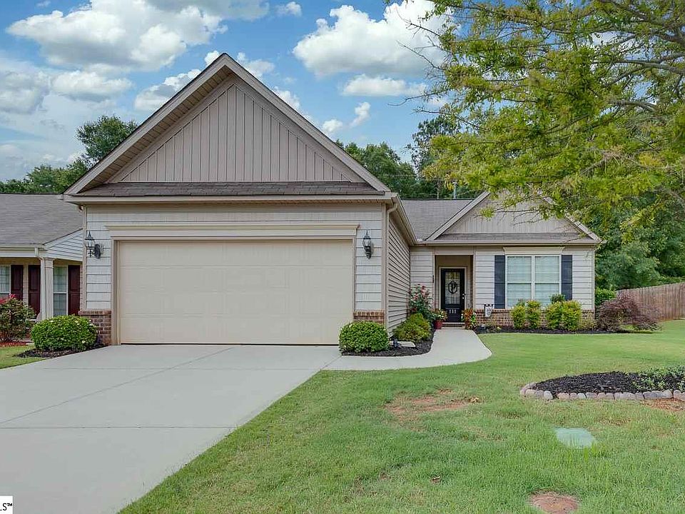 You must see this immaculate SINGLE STORY 3 bedroom home close to 385 and Fairview Road in Simpsonville! Come home to the open feeling of 9 foot ceilings and hardwood flooring in the main living area. The kitchen features granite counter tops and stainless steel appliances. Enjoy privacy from the owners suite with a split floor plan. A trey ceiling and an en suite owners bath with dual sinks and walk-in closet are all you need in this gem. Two more bedrooms and a full bath are located on the opposite side of the home. Outside you will find a nice patio and lots of privacy. The back yard connects to a wooded area that is HOA owned and the entire perimeter of the home is fully landscaped and has a full yard in ground sprinkler system. You cannot go wrong with this home because the community is also fully stocked with amenities to include a large pool, kiddie pool, clubhouse, fitness center, sidewalks, mini-library, playground, and fountain.
