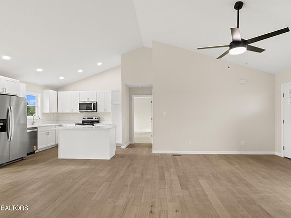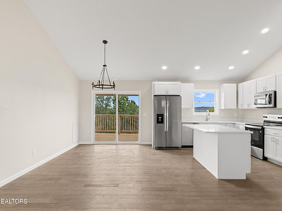 Enjoy stunning mountain views from the front porch of this brand-new 3-bed, 2-bath home. The open split-floor plan features engineered hardwood floors, vaulted ceilings, and abundant natural light. The kitchen includes an oversized island, quartz countertops, and plenty of countertop and cabinet space for cooking and storage. The primary suite is enhanced with tray ceilings, a walk-in closet, and a sleek Onyx Collection shower with no grout lines to clean. Step outside to a large covered back deck overlooking rolling hills on your 0.59-acre lot. Additional conveniences include a spacious laundry room and a 20x25 ft garage. Nestled at the end of a quiet cul-de-sac in a well-kept neighborhood, this quality-built home is truly a must-see.
