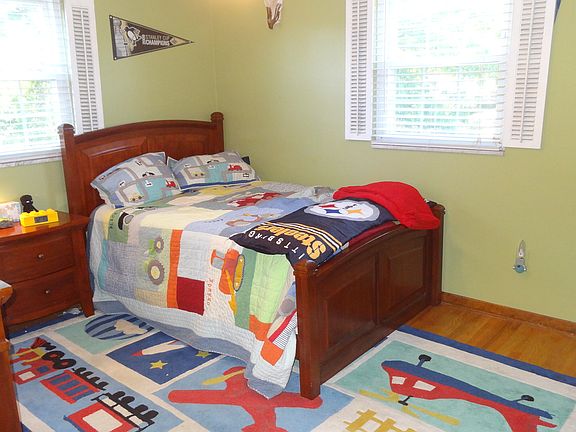 Spacious custom home with many updates, beautiful front door greets your guest, this home provides a bright and airy floor plan, large kitchen with cherry cabinets, granite counters, Stainless Steel Appliances, and tile flooring. Family Room, with gas fireplace with modern stacked stone, updated bathrooms, hardwood floors throughout the home, sun room off of the family room with wood cathedral ceilings and three walls of windows, wrap around deck overlooking a private wooded lot, owners suite has a wall length closet & Full Bath, marble flooring with marble/glass tile shower and glass door, Three additional spacious bedrooms and updated guest bath, The Game Room has a wood burning brick fireplace, bar area and full bath, sliding glass doors to a patio and level yard, large laundry room, Marble window ledges, custom molding throughout. Shed and chicken coop too! Conveniently located near shopping, restaurants, schools, minutes to The Pittsburgh Airport and Downtown Pittsburgh.