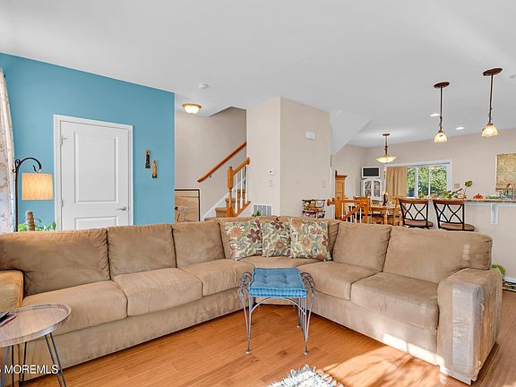 Welcome to New Visions, contemporary Townhomes nestled in the heart of Brick. This 3 story Townhome freshly painted comes with quality finishes and an open-concept living, hardwood flooring, stylish kitchen, with exotic granite counter tops, Stainless steel kitchen package, under the counter lighting, garbage disposal, high-end custom shades, w/d, microwave, dishwasher, 2025 water heater, forced air heat, central air, fan lights, extended (pop out) specialty windows. Walk-in closets, bidet in master bath, newer, upper outdoor deck overlooks beautiful wooded area for your privacy. Outdoor lighting, water sprinklers and trash containers & lawn maintenance included. Must see to appreciate. Also, conveniently located near dropping restaurants and beaches. Ideal for commuters.