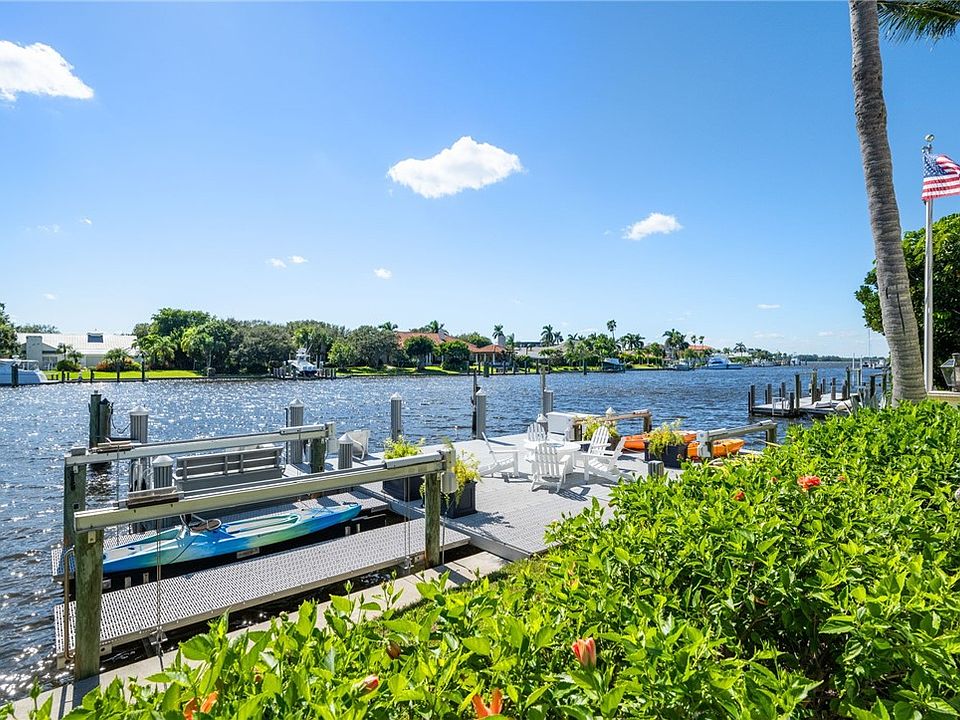 Exceptional West Indies style home designed by architect Greg Anderson to enjoy the waterfront lifestyle. Located in the gated Anchor community of The Moorings, this beautifully maintained residence takes advantage of its deepwater location w/over 100’ of water frontage, 2 lifts, dock & 3 car garage.Enjoy outdoor living w/the waterfront infinity pool/spa, summer kitchen & private beach access. Indoor living features floor to ceiling French doors in living room & in family room. Other features include gourmet kitchen, formal dining, downstairs primary, upstairs great room & impact windows/doors