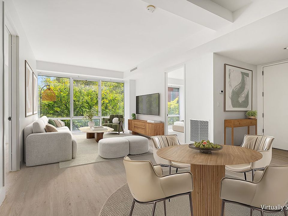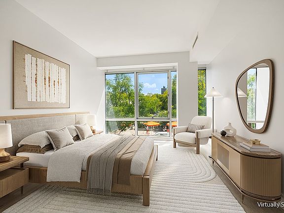 Welcome to an exquisite living experience at The Absolute Condos, nestled in the vibrant heart of Clinton Hill, Brooklyn. This sophisticated, light-filled two-bedroom, two-bathroom apartment offers an elegant and modern lifestyle, set against a serene leafy backdrop.
