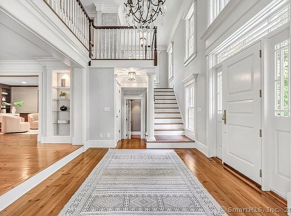 Welcome to 111 Sturges Highway, the pinnacle of refined elegance and timeless design. A circular drive framed by majestic stone walls sets a distinguished tone upon arrival, while a second driveway provides access from a coveted quiet street. Graceful columns evoke the grandeur of a Southern mansion, while sweeping lawns and specimen plantings create a park-like setting that ensures privacy and tranquility throughout the grounds. Inside, luxury abounds. Sunlit interiors framed by French doors and expansive windows capture serene views of the outdoor oasis. The spacious, open layout balances sophistication with comfort, beginning w/ a recently renovated custom Chef's Kitchen and a striking curved archway that seamlessly defines the transition between the Living and Dining Rooms. The home's remarkable scale continues throughout: a vaulted Primary Suite with fireplace & luxury bath offers a true retreat, complemented by 3 additional spacious Bedroom Suites & a 2nd floor Family Room. A striking Office w/ fireplace is ideal for work or study, while a private Home Gym overlooks the magnificent heated indoor Pool and Spa. Each space is enriched with superior craftsmanship, intricate millwork, and architectural details impossible to replicate. Designed for both grand entertaining and intimate living, this exceptional residence offers the ultimate layout for modern lifestyles-complete with a year-round country club atmosphere and endless opportunities to gather, relax, and recharge!