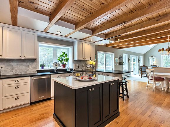 Property UA-Open House cancelled! Beautifully appointed though out and ready for new owners is this delightful four bedroom, three bath c.2000 showplace home situated in a private setting near the Massachusetts border in a cherished neighborhood of quality homes with common rights to miles of nature and cross country skiing trails and private beach and recreation area on pristine Sunridge Pond. The property features a high ceiling great room with stone-faced woodstove hearth which opens on a 14x36 sundeck with access to inground pool. The open plan flows through breakfast room to wonderful beamed ceiling chef's kitchen with many luxury features on to downstairs study/music room, laundry and bedroom with hall full bath. Upstairs is sun-filled owner's bedroom suite with large closet wall and custom spa shower double vanity bath, two additional family bedrooms and hall full bath. A full basement with utility area, large partially finished playroom and two car garage complete the picture. A most appealing modern home with many recent upgrades...a rare find indeed!