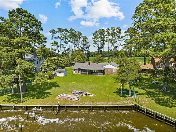 New facia boards with leaf protection guttering; new light fixtures. Enjoy your 8 X 12 shed/workshop with power. Other amenities include an oversized garage with storage room, laundry room and mudroom with sink. You will love swimming, fishing and crabbing from your own back yard. Salt treated lumber is provided to reinstall the pier. There is a separate fenced area for gardening or for a dog run. County water with commercial water softener and well water too. NO FLOOD INSURANCE REQUIRED AND NO HOA!