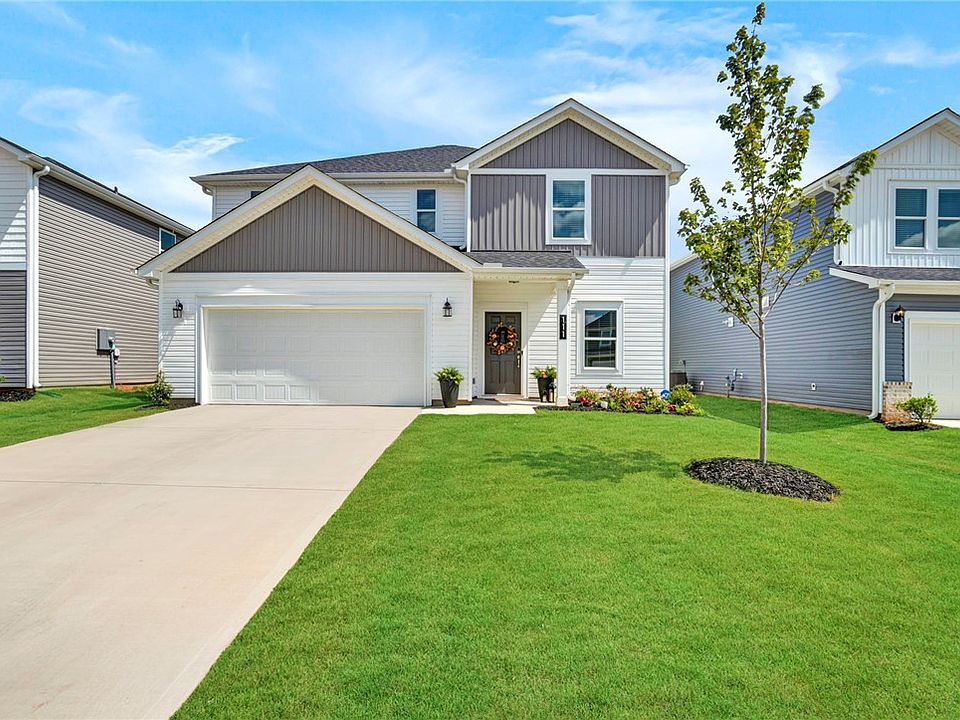 Welcome to 111 Tantalus Street in Gray Court’s Farm at Wells Creek community—a beautifully crafted 2025 Meritage home that blends modern design with everyday comfort. This 2,594 sq. ft. Craftsman offers 4 bedrooms, 2.5 bathrooms, and a thoughtful open-concept layout featuring a stylish kitchen with Pebble cabinetry, granite countertops, and a center island overlooking the great room. A flexible main-level space is perfect for a home office or playroom, while upstairs you’ll find a spacious primary suite separated from the secondary bedrooms by a cozy loft for added privacy. High-end finishes include EVP flooring, plush carpet in bedrooms, and energy-efficient construction throughout. Outside, enjoy an attached two-car garage and a low-maintenance lot within a vibrant neighborhood featuring a pool, dog park, pickleball courts, and a playground. Conveniently located near I-385, this home offers easy access to shopping, dining, and entertainment, while being served by Fountain Inn schools. Perfectly blending style, function, and community amenities, this home is move-in ready and designed for modern living.