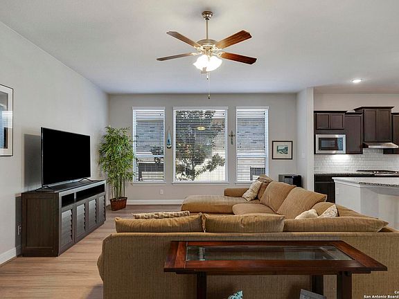 [Open House Saturday 10/18 Noon-2P] Enjoy the benefits of a like-new, move-in ready home in the sought-after Regent Park community featuring resort-style amenities. Step into a spacious open floor plan designed for modern living, with a large kitchen featuring stainless steel appliances, a gas cooktop, generous storage, and a huge island perfect for entertaining friends or gathering with family. The adjacent breakfast nook offers a cozy space for casual meals, while the extended patio with a gas stub makes outdoor grilling easy and enjoyable. The 2.5-car garage provides extra space for storage, hobbies, or a home gym-whatever suits your lifestyle. A separate formal dining room currently functions as a home office, offering flexibility to match your needs. Downstairs, the light-filled owner's suite creates a peaceful retreat, while two secondary bedrooms with walk-in closets provide comfortable living for family and guests. Upstairs, you'll find a large game room, a fourth bedroom, and a third full bath-ideal for a private retreat. An owned water softener is included for added value. Regent Park's amenity center offers a community pool, fitness center, business hub, event room, playground, and picnic pavilion-all just minutes from I-10 and Boerne amenities. Seller will consider a paint allowance with an acceptable offer and will remove the loft bed and make repairs to that area as needed. Grass color enhanced in pictures