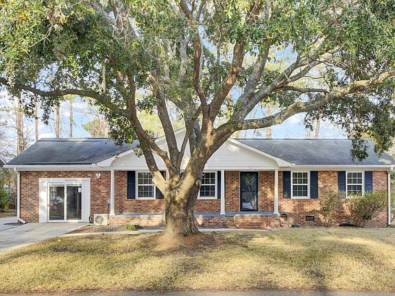 This adorable brick ranch a beautiful live oak framing the front yard. Plenty of yard space with a detached garage in the back. A formal living space connected to a separate dining room, and a family room with a fireplace. Hallway down to three bedrooms including the owners suite, and full guest bathroom. Laundry room connects to the original garage that has been converted into living space with its own mini-split HVAC system. New carpeting, hot water heater and freshly painted. Great first time home buyers option or this would make a great investment property as well. Zoned for Dorchester District II schools, and easy access to major roadways and employers.