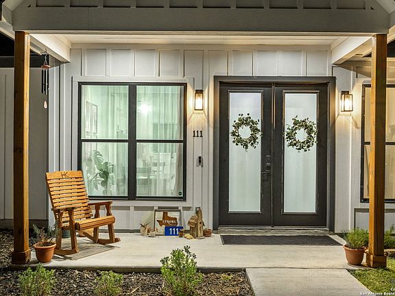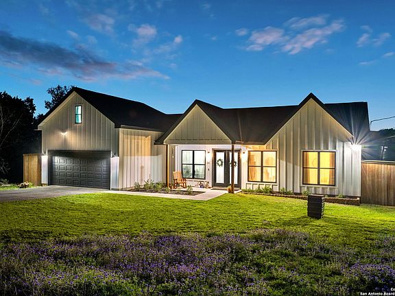 This stunning Farmhouse, nestled in the heart of the Hill Country, offers the perfect combination of luxury and charm. Situated on a spacious, upscale lot, this home boasts breathtaking views of the Texas skies and the Guadalupe River. With 3 bedrooms, 2 1/2 baths, and a bonus room, this home is equipped with all the modern upgrades. Top-of-the-line security measures, including custom lighting and cameras, have been installed throughout the property. The outdoor space is equally impressive, featuring an 8-foot privacy fence, cattle fence with a gate, and a 14x24 foot composite deck with wrap-around stairs. Inside, the farmhouse aesthetic is complemented by state-of-the-art appliances, old southern deep sinks, and custom cabinets with built-in drawers. The open concept kitchen and dining area flow seamlessly into the great room, making this home perfect for entertaining. The primary bedroom is a true retreat, complete with a walk-in, custom-built executive shower, a separate tub with a view of the backyard, and fingerprint locks for added privacy and security. The laundry room and pantry offer ample storage space, while the elevated ceilings and large windows provide an airy and spacious feel. This home is also Airbnb friendly and has the potential to generate income for the owners. Don't miss your chance to own this high-end, luxury farmhouse and make it your dream escape. Plus, it may qualify for a DSCR loan! INVESTOR SPECIAL