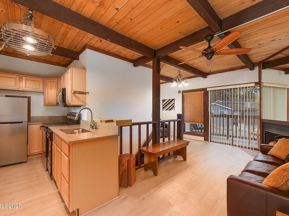 BEST BANG FOR YOUR BUCK IN UPPER KINGSBURY! This SKIERS PARADISE condo is fully upgraded. Granite counter tops, new doors and frames, new king-size bed, updated vinyl floor, new light fixtures, updated bathrooms and a brand-new water heater. Down the street is the Stagecoach Express, top entrance to Heavenly Valley Ski Resort. Kick back with a "hot toddy" after a day on the slopes in front of your beautiful fireplace. PLUS, fully furnished FANTASTIC furniture. Come and see.
