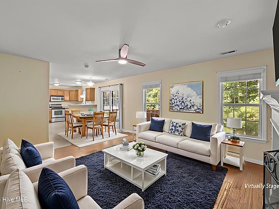 Set on a peaceful cul-de-sac, this 4-bedroom, 2.5-bathroom home offers both space and comfort on a generous 1.49-acre lot. A large paved driveway with parking pad leads to a two-car garage and covered front porch, welcoming you inside. The open-flow floor plan features wood flooring, a cozy gas fireplace, a breakfast bar in the kitchen, and a formal dining room for special gatherings. Stainless steel appliances complete the kitchen, while the back patio provides a perfect place to enjoy the outdoors.