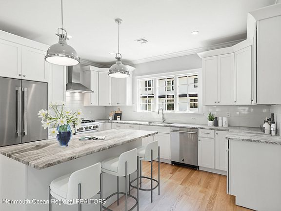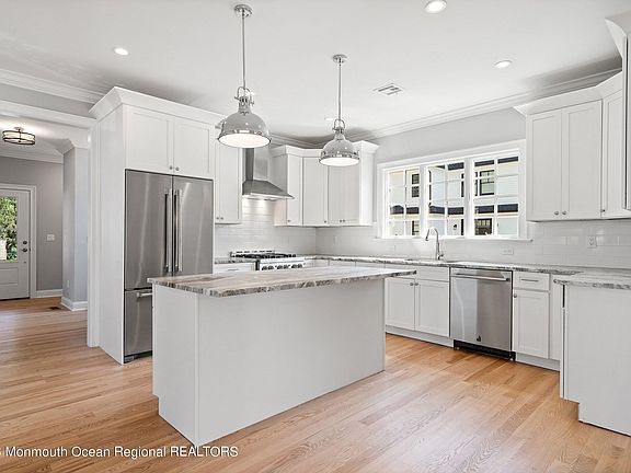 Welcome home to Manasquan! This brand new custom home boasts 2800 sq ft of living space, & a great open floor plan. The gourmet kitchen has solid wood cabinets, granite counters, tile backsplash, stainless steel appliances and a large center island. The kitchen opens to the dining & family room, which has a gas fireplace, & sliders that open to the backyard. Custom trim & beautiful hardwood floors throughout the entire home. High quality Anderson windows. Primary Suite offers a custom bath, with duel sinks, and walk-in shower. Oversized laundry rm, w/ custom cabinets, 3 BR's and a full bath complete the 2nd floor. Finished 3rd floor, for extra space. Detached garage, a beautiful paver driveway, & sprinkler sys. Close to town & the beaches.
