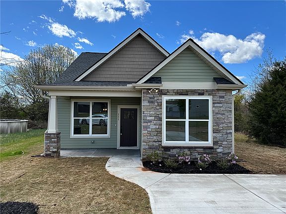 NEW CONSTRUCTION. Own a brand new home in the beautiful Veranda Estates neighborhood. Conveniently located 10 minutes from Clemson University and 7 minutes from I-85, there is plenty of shopping and restaurants to keep you entertained. This neighborhood has no established HOA which makes it ideal for someone looking for a tight-knit neighborhood without the rigidity. 111 Veranda Circle is a single level home with upgraded finishes both inside and out. The home boasts stone accents, craftsman columns, large windows, and a nicely sized back yard encapsulated by trees. The new landscaping can be enjoyed from both front and back covered patios. The living area greets guests as they enter the home with a tray ceiling, an oversized window, and LVP flooring. From here, the home features extensive crown molding as it flows into the dining area and kitchen. Another oversized window perfectly frames the dining area and allows for plenty of natural light. From there, the kitchen can be easily accessed for convenient meals and gatherings. There you will find granite countertops, a kitchen island, and upgraded storage. The kitchen also includes a stainless steel oven, dishwasher, and microwave that are included in purchase of the home. Nearby to the kitchen is a dedicated laundry room. This includes washer and dryer hookups as well as overhead storage and natural lighting. This home has three bedrooms. The master bedroom has tray ceilings and multiple large windows. It also includes a walk in closet and private bathroom. The master bathroom has a double vanity, granite countertops, and more storage than you will see in most bathrooms. It has a large linen closet and the double vanity sink has cabinets and drawers underneath as well. This home has two additional bedrooms, each featuring large windows. The spare bathroom includes coordinating granite countertops and under sink storage. If you are looking for a bright, brand new home in close proximity to all that Clemson has to offer, 111 Veranda Circle is the perfect place to call yours.