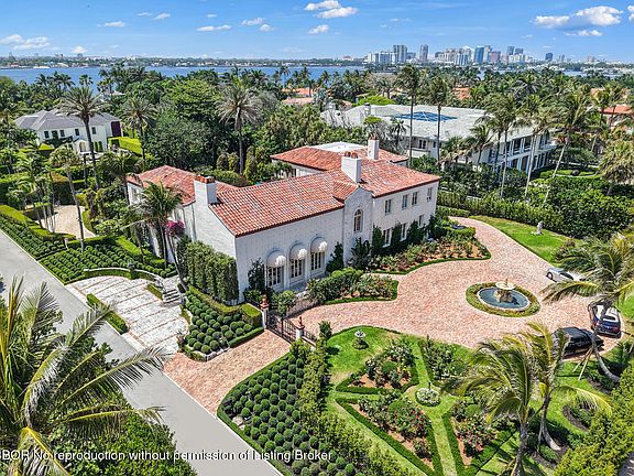 Exceptional Marion Sims Wyeth 3-story compound located in Palm Beach's gracious Estate Section -now a ''no fly'' zone. This lovely 1.2+ acre property has lovely fountains, manicured east & west rose gardens, BBQ, al fresco dining & entertainment areas. Its' numerous amenities include a Living Room (35' ceiling) with original stenciled Pecky Cypress beams, 3 fireplaces, Primary Suite with dual closets & dual baths, Wine Cellar, Impact Windows & Doors, 6 car garage + 4 covered spaces outside. Additional details: Pool, 2-story Cabana, Gym, Roof (3yr), Full House Generator, Chef's Kitchen, 2 Laundry Rooms, Elevator, Staff/Guest quarters, Dog washing Station, Robotic Lawnmower, & nearby Beach Access. A total dream & close to all that Palm Beach has to offer!