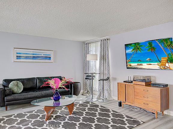 Welcome to 111-A Via Estrada – a lovely single-level, end-unit, two-bedroom, one-bath BARCELONA residence in the active Laguna Woods senior community. This property is located in a quiet corner of the cul-de-sac far from busy roads and noisy highways. Sitting on a bluff, this residence has a tranquil neighborhood view. The beautifully landscaped approach to the front of the residence adds to the property’s curb appeal. Private front patio is the perfect location for outdoor entertaining, dining and relaxing. The large living room allows a variety of different furniture configurations. The light and bright kitchen has a window overlooking the front patio. There is a private outdoor central atrium just off the dining area. The primary bedroom easily accommodates a king-size bed. The versatile guest bedroom could alternatively serve as a home office, workout room or arts and crafts studio. The bathroom has a skylight and a tub/shower combo with grab bar. Upgrades include gorgeous laminate flooring, dual-pane windows and a newer stackable LG washer/dryer conveniently located in a corner closet of the bathroom. This residence has been well-maintained and is move-in ready or it can be upgraded or completely remodeled to a new owner’s taste. The assigned carport has both upper and lower storage cabinets. Plus, there is ample guest parking in the cul-de-sac. Do not miss this attractive residence!