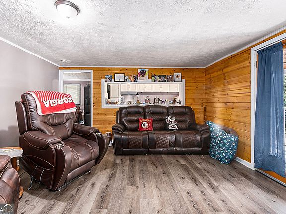 Updated 3BR/2BA home on 0.92 acres with a long-lasting tin roof, newer HVAC & water heater, updated electrical, and instant hot water. Step inside to a spacious kitchen featuring fresh high-gloss painted cabinets, a brand-new faucet, ample cabinetry, granite countertops, and all appliances included - enjoy 2 stainless steel refrigerators plus a brand-new stove! Open layout with gray laminate floors, kitchen views into the family room, and rustic pinewood accents, plus extra shelving throughout for added storage. The exterior boasts a freshly repainted front porch and trim, a custom 10-ft porch ceiling, and freshly stained fencing. Outdoors also includes 4-car barn-style parking, powered workshops/storage, and a large, level backyard that extends to a peaceful clearing. Ample driveway parking for up to 10 vehicles. Conveniently located between Old Atlanta Rd & North Expressway - just 10 minutes from Atlanta Motor Speedway!