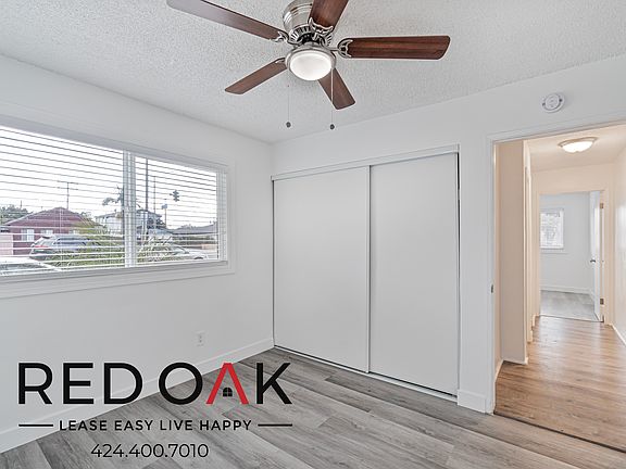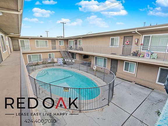 Cheerful Two Bedroom with Included Kitchen Appliances, Spacious Rooms, Sunny Windows, Swimming Pool, On-Site Laundry, and Parking Included ~ In Prime Long Beach! Unique Features: Bright & Airy: Enjoy large windows and lots of natural sunlight, accentuating the hardwood-style flooring and spacious rooms. Enhanced Privacy: Blinds on the windows let you control the light and offer additional privacy. Temperature Control: An efficient gas furnace and breezy ceiling fans will ensure that your home is always comfortable. Eat-In Kitchen: Featuring custom-built hardwood cabinets, stylish countertops, and classic white appliances. Relax in Comfort: Relax in the spacious bedrooms, each with an ample closet, sliding door, large windows, and ceiling fan. Elegant Bathroom: Boasting modern fixtures, a soaking tub with a convenient shower head, vanity with ample storage, and a well-lit mirror. Easy On-Site Laundry: Adding convenience to your everyday chores. Garage Parking: Enjoy an included space for your personal vehicle. Pet-Friendly Policy: This community warmly welcomes your pets with a small deposit and monthly pet rent. Pool Access: The sparkling community pool is ready to cool you off on hot days, and is a great place to relax. Convenient Location: Only seconds away from the 710 FWY making travel super convenient. You are only a short drive from all that Long Beach has to offer such as Downtown, Dining, Country Clubs, and Great Schools. Don't miss out on the opportunity! Available for an immediate move-in. LEASE TERMS: 1 Year Lease Pictures and descriptions are of EXACT unit Square Footage is approximate. Showings may not be 1-on-1. All information must be validated on Red Oaks Website since 3rd party websites can feed incorrect information.