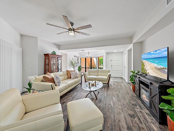 ASSOCIATION PROPERTY INSURANCE INCLUDED IN COA FEE! Move right into this beautiful condo located in one of the most sought-after communities, The Lakes in Canterbury of PGA National, where homes rarely become available. With only 16 homes in The Lakes, don't miss your chance to own this gem! The current owner spared no expense, investing over $100,000 in upgrades to create a truly exceptional living space.The exterior features lush landscaping at the entrance, a NEW ROOF, and a freshly painted exterior. Inside, you'll find a long list of upgrades, including:* New flooring throughout (old flooring was completely removed)* NEW CORE A/C unit* New springs in all windows and screens in the back porch* Custom cut baseboards * Smooth ceiling substrate (replacing the old popcorn ceiling)